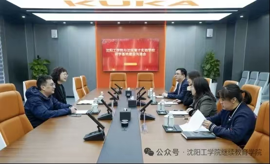 为深化校校协同育人,推动研学教育高质量发展,搭建高校与中小学研学合作桥梁,4月3日,沈阳工学院与沈抚育才实验学校研学基地建设沟通会在库卡授权工业机器人学院8楼会议室顺利召开。双方学校相关负责人围绕研学合作事宜深入磋商、共话发展。沈抚育才实验学校副校长、高中部校长贾桂华、高中部副校长王岩,我校副校长杨秀英、继续教育学院院长兼教务处处长杨玥、副处长林凯、副处长孔德尉参加座谈。